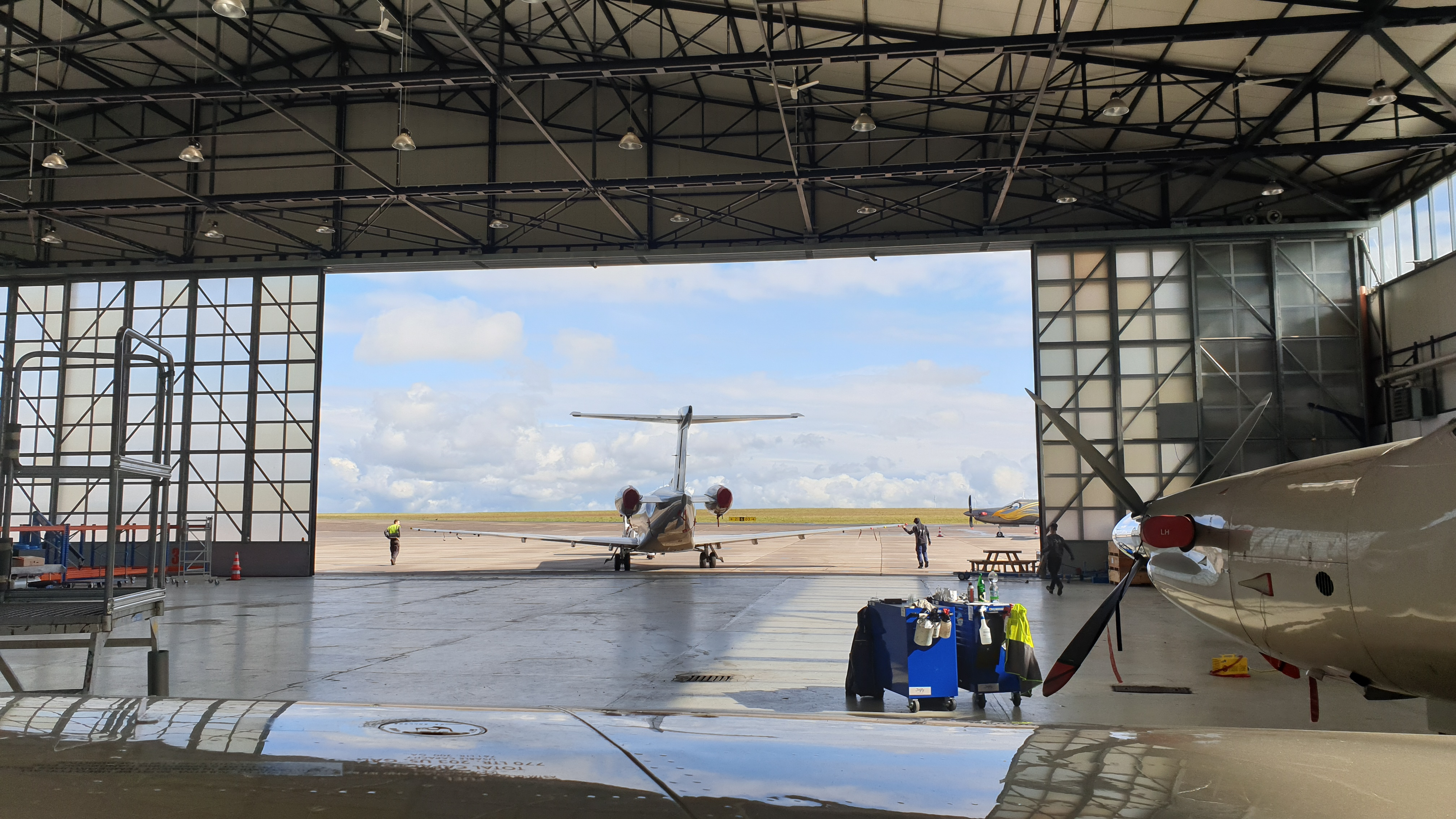 Bij Jetfly Technik in Zweibrücken wordt alleen base maintenance (groot onderhoud) uitgevoerd en als het nodig is ook AOG’s (Aircraft on ground). Het standaard proces voor de PC-24 was om het vliegtuig eerst helemaal te strippen, van binnen en buiten, en dan konden de inspecties en het standaard onderhoud worden uitgevoerd. Bij de PC-12 worden eerst de ‘’functional tests’’ uitgevoerd voordat het vliegtuig wordt gestript.