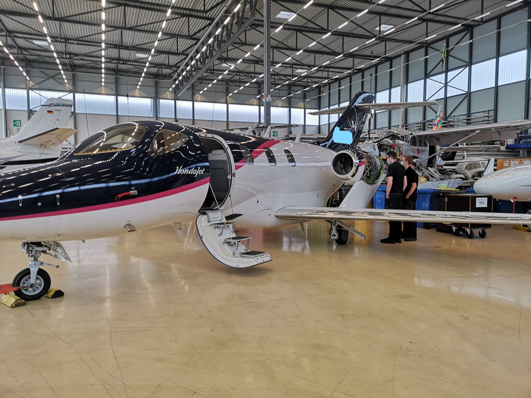 Rheinland Air Service is een bedrijf met een grote diversiteit je kan aan grotere vliegtuigen werken zoals een ATR 72 of aan kleinere vliegtuigen bv. HondaJet, Kingair, Piaggio, … . voor mij leek het fijn om aan kleinere vliegtuigen te sleutelen omdat je daar altijd wat anders mag doen.