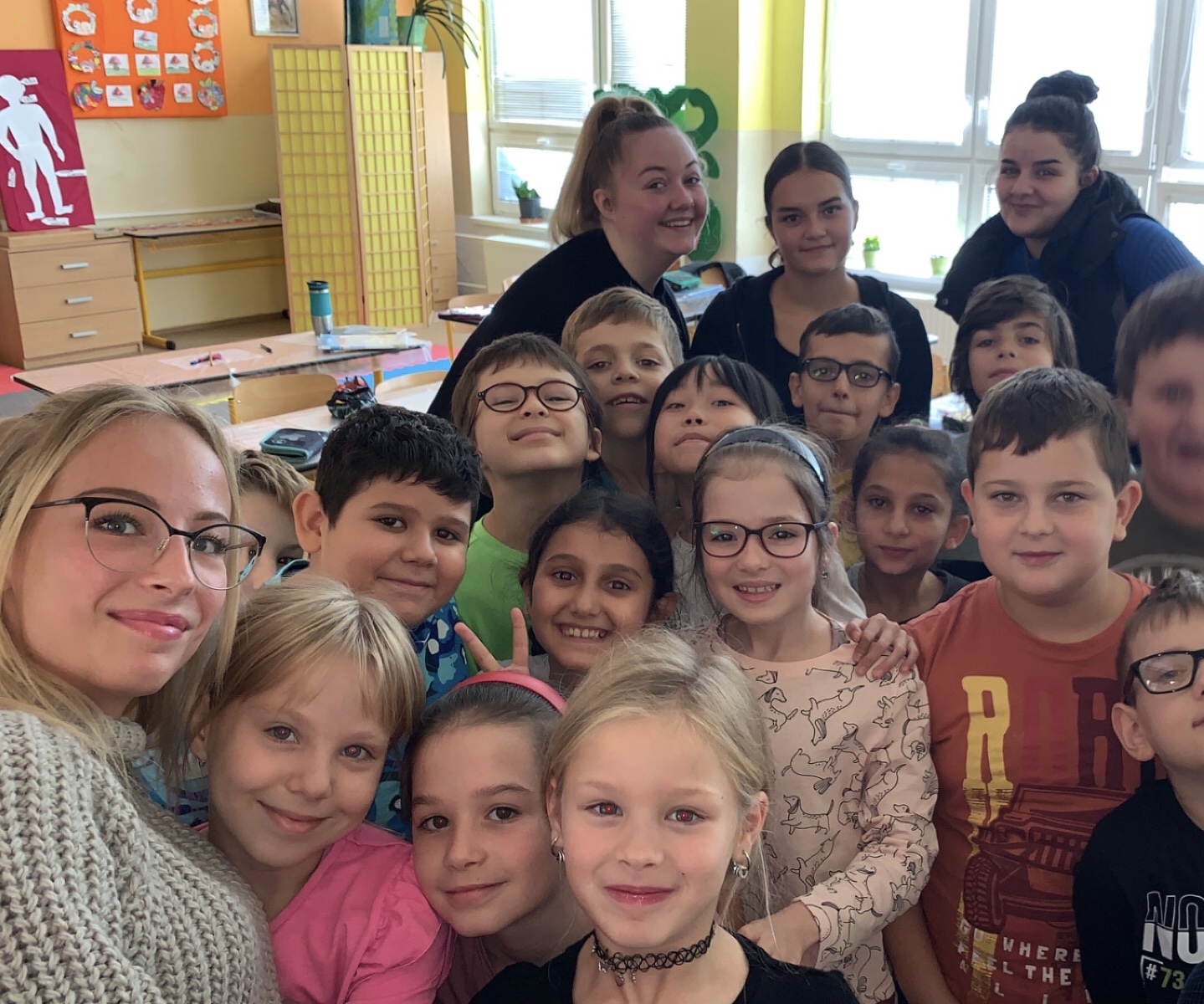 We moesten een les volgen en de lerares verstond ons niet. Als we iets wouden weten of vragen dan deden de kinderen het voor ons translaten.