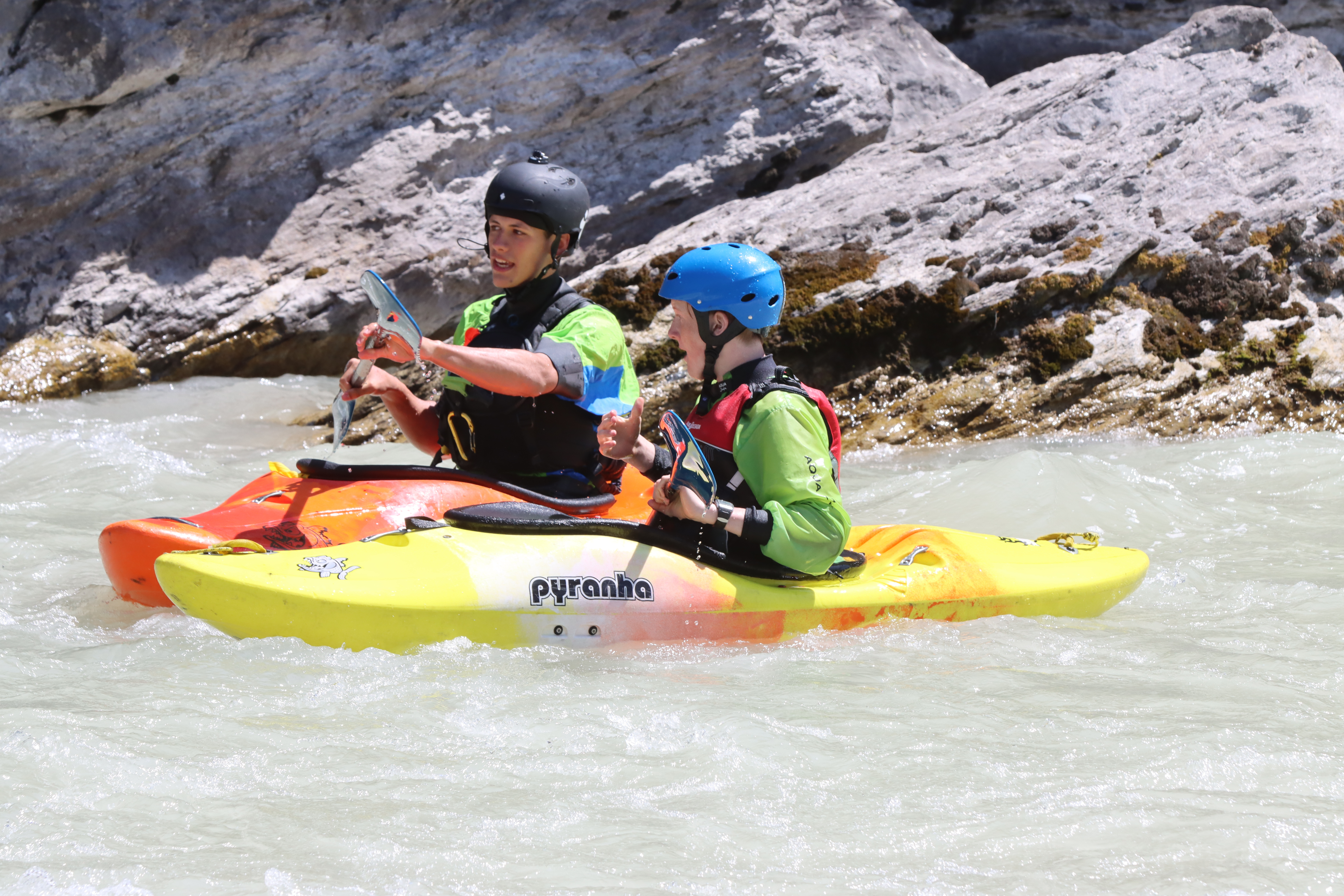 Hierna zijn de echte wildwater activiteiten begonnen. In de eerste week heb ik bij een kajak cursus mee mogen draaien, hierbij krijgen de cursisten 5 dagen lang les in een kajak en leren ze het wild water kennen.