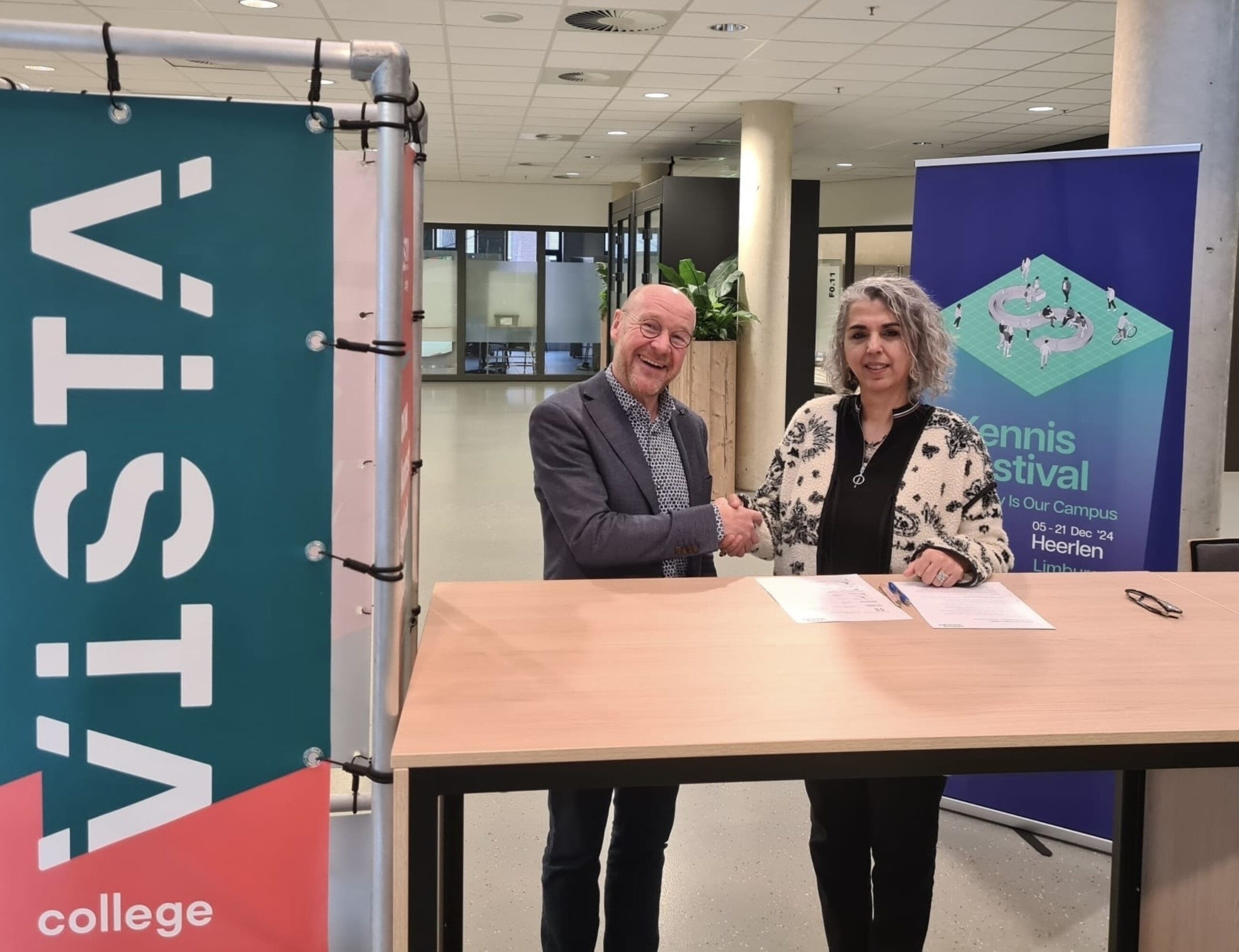 Op 28 november tekende Menno Pistorius, namens ons College van Bestuur, onder toeziend oog van Nurhan Abujidi alvast deze overeenkomst waarin we onze samenwerking binnen City Deal Kennis Maken en de verduurzaming hiervan onder de titel Limburg UniverCity onderschrijven.